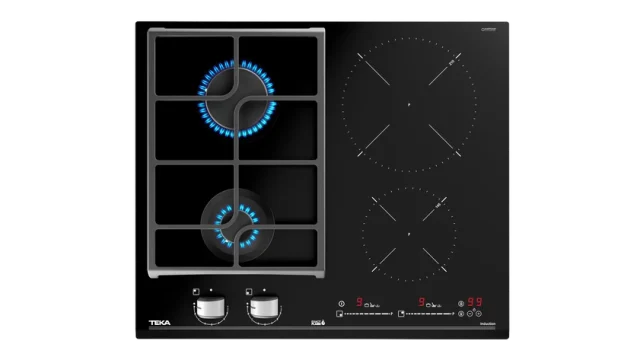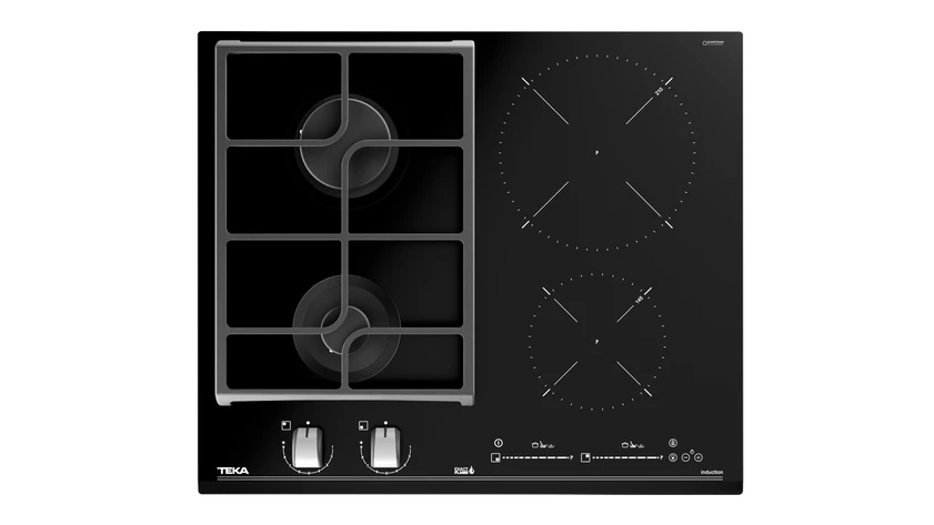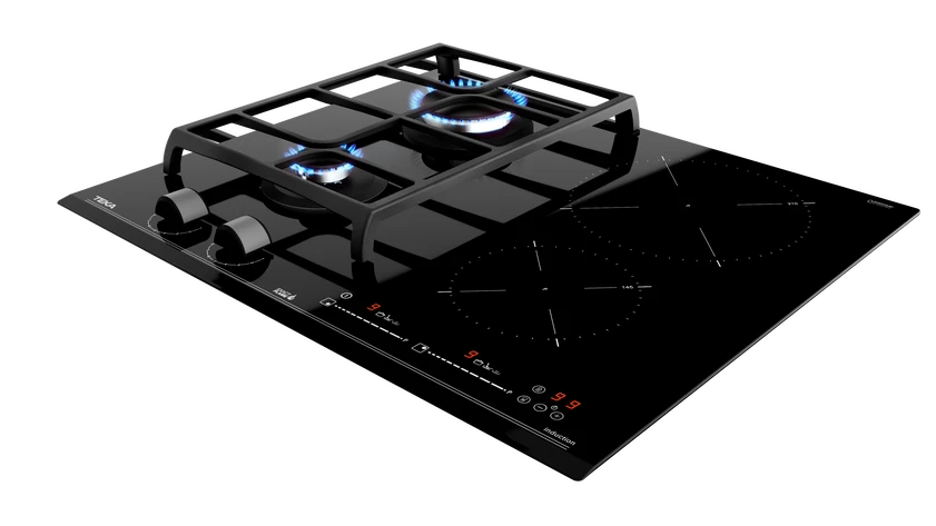 Plită mixtă din cristal 2 zone gaz + 2 zone inducţie, 60 cm, cu Touch Control Mulţi Slider, 9 nivele de putere şi 4 zone de preparare